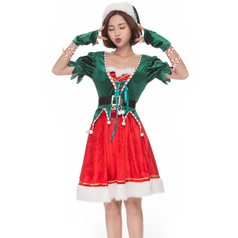 Hot Sale Cute Elf Costume Christmas Women Adult Santa's Helper Cosplay Costume Carnival Party Dress
