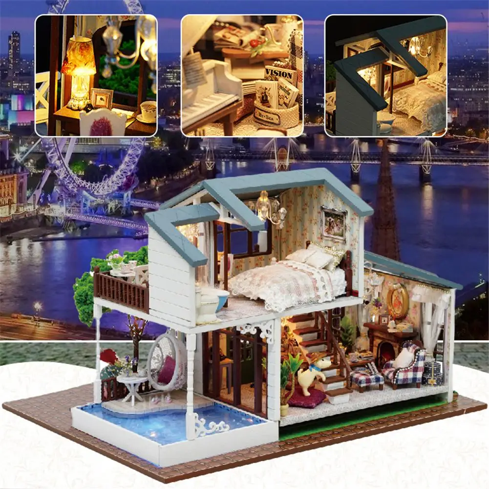 DIY Cottage Hand-assembled Wooden Doll House Innovative Birthday Gift - London Holiday For Children