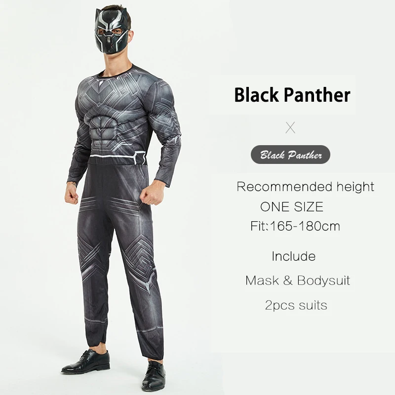 SuperHero Costume Endgame Clothes Jumpsuit Captain America/Hulk/IronMan/Thor/Black Panther Muscle C