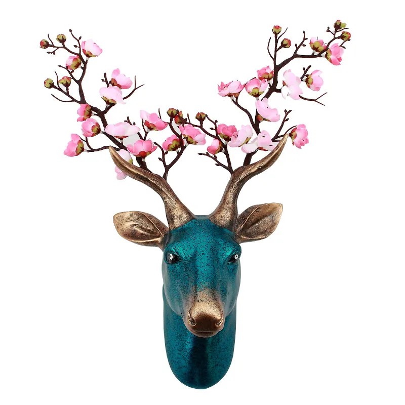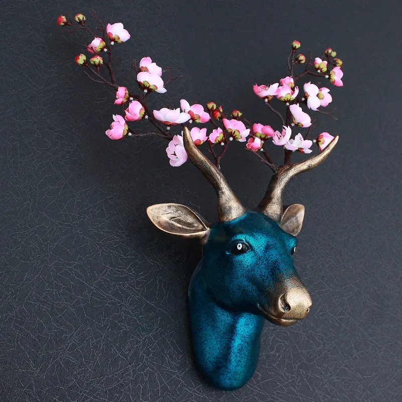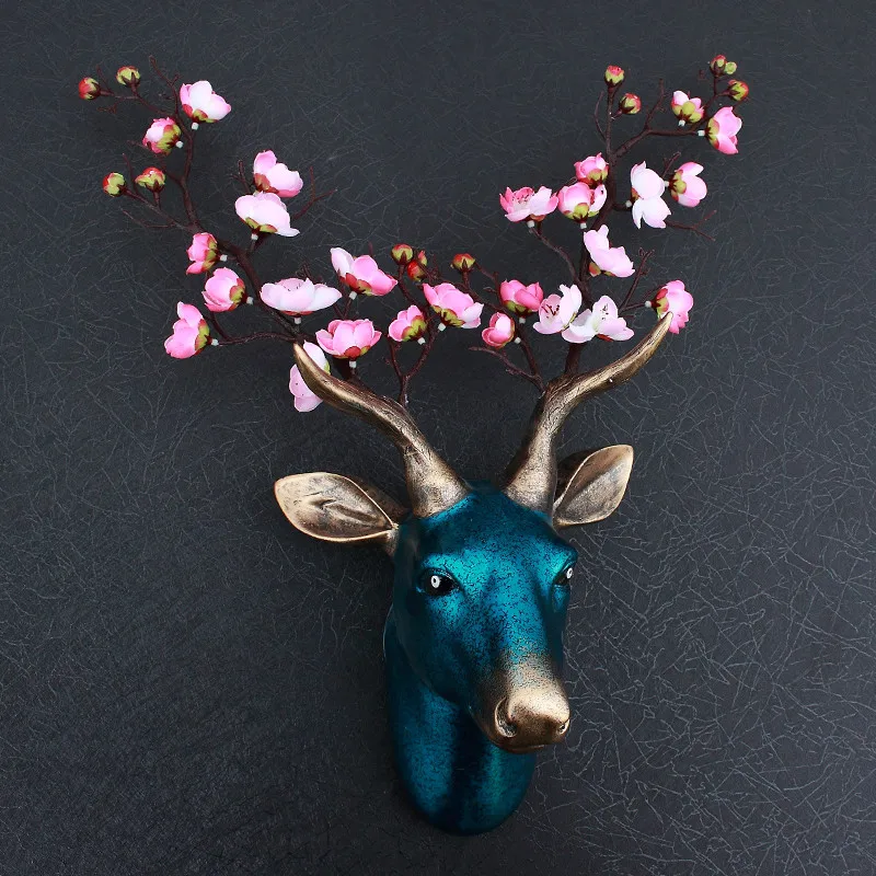 49CM American Creative Lucky Deer Head Wall Hanging Sika Deer Bar Pendant Living Room Home Sculptur