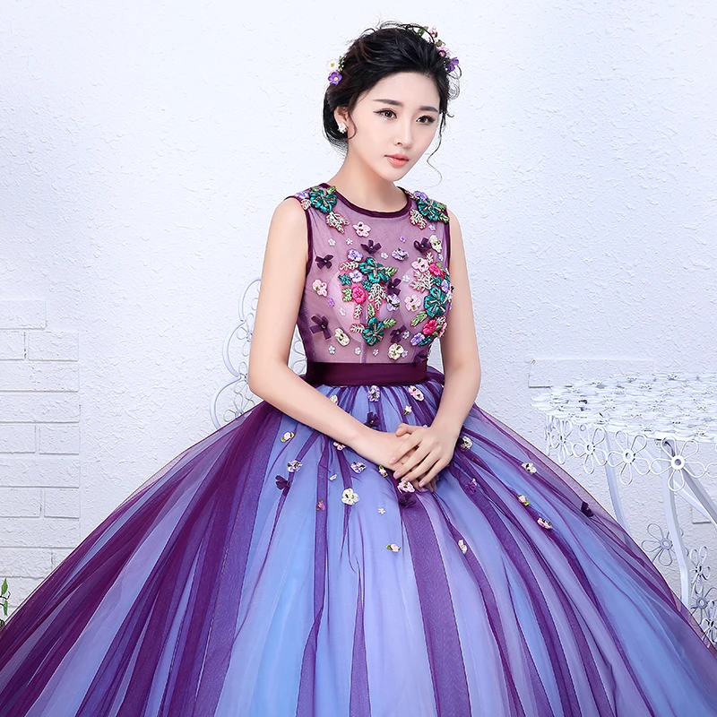 ORIGINAL 100%real round neck flower embroidery lace ball gown medieval dress Renaissance gown Sissi princess